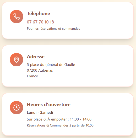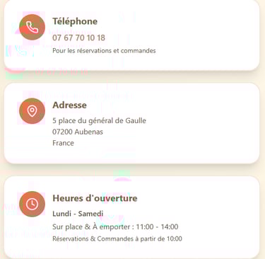 Nous serions ravis de vous entendre. Contactez-nous pour des réservations, des questions ou des commentaires.