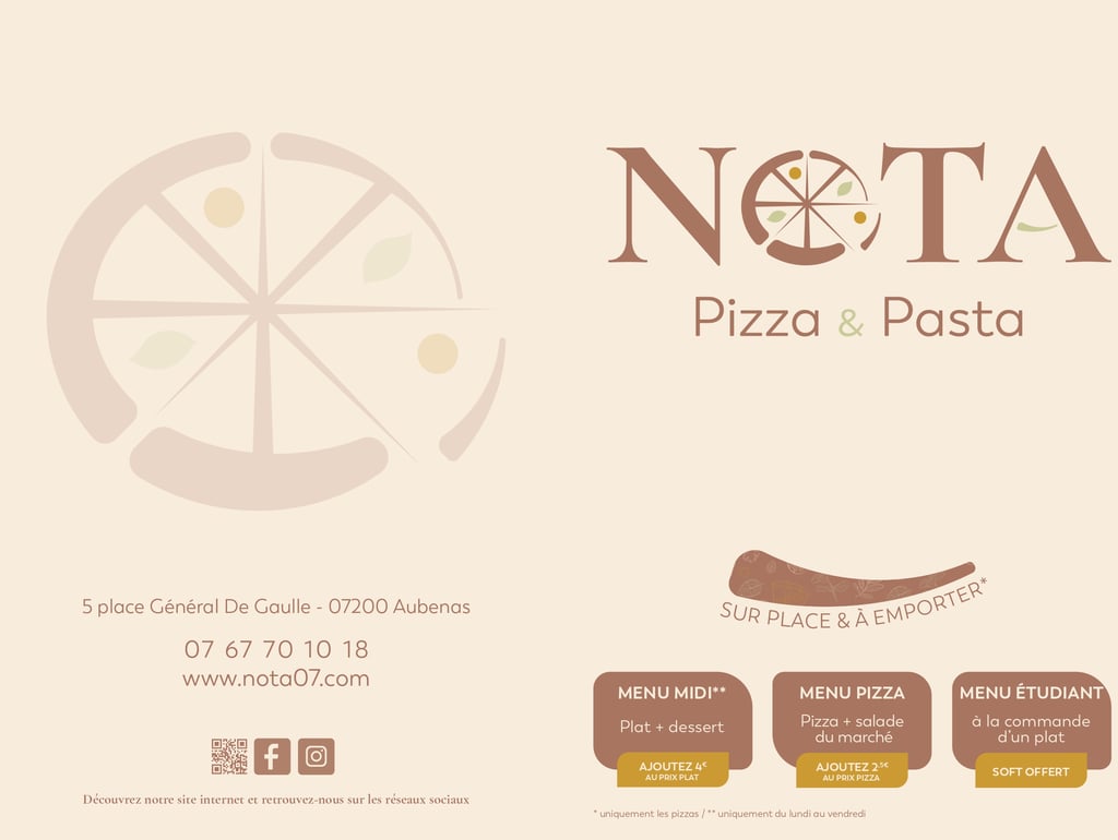 © 2026 NOTA Pizza & Pasta. Tous droits réservés.